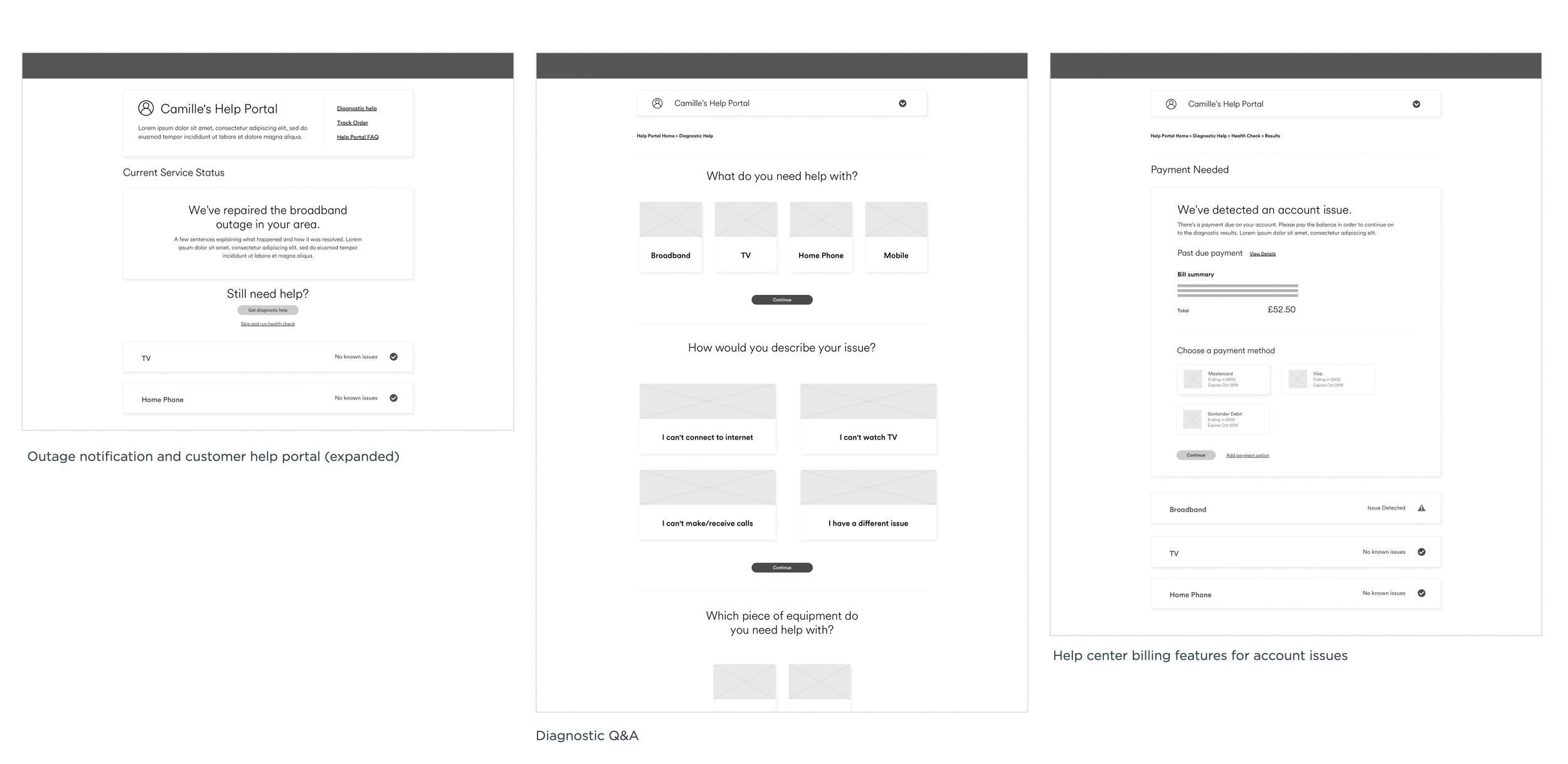 • Conducted discovery research and mapped the end-to-end help journey to surface pain points, which informed the design of outage notifications and guided diagnostics.